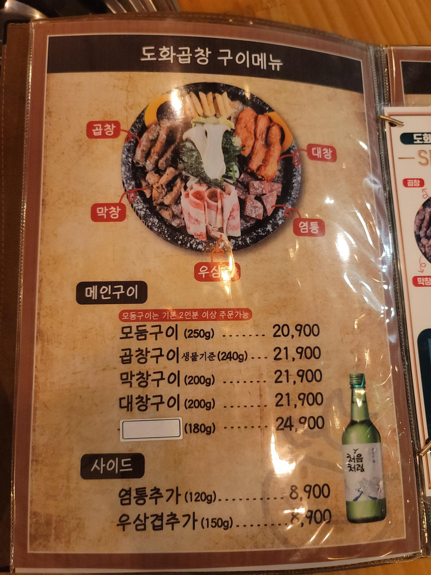 대표 메뉴 : 곱창 모듬구이 20900  곱창전골 27000~